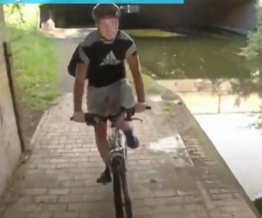 Divi velosipēdisti satiekas šaurā vietā zem tilta un viens no viņiem spiests izbaudīt peldi kanāla ūdenī. Lasīt vairāk