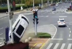 Velosipēdists ignorē lusofora aizliedzošo signālu un tūdaļ "tiek sodīts", saduroties ar automašīnu, kas izbrauc no labās puses. Lasīt vairāk