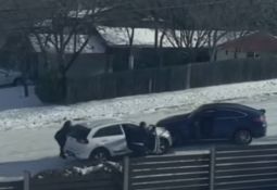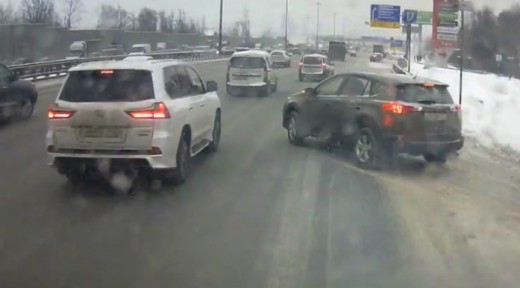 Video autors saduras ar krosoveru, kura vadītājs izbrauc no degvielas uzpildes stacijas un apstājas (visi notikumi: 1:10-1:20). Lasīt vairāk