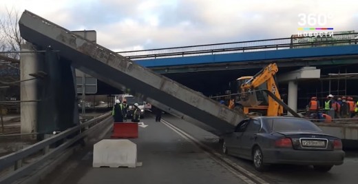 Pa priekšu braucošais kravinieks aizķer pārvada konstrukciju un vairākas tonnas smagais dzelzsbetona panelis uzgāžas vieglā auto priekšdaļai. Lasīt vairāk