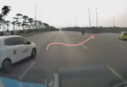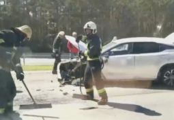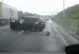 Agresīvs autobraucējs apsteidz Toyota pa labo pusi un izbrauc pretējā joslā, kur saduras ar pretimbraucošo Iveco kravinieku. Lasīt vairāk