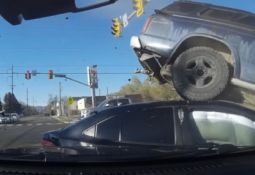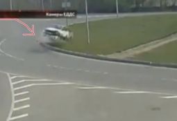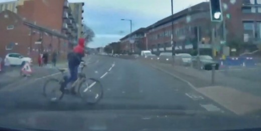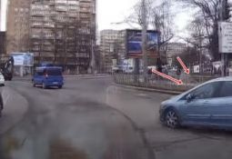 Autovadītājs brauc pie zaļās gaismas un saduras ar velosipēdistu, kurš izbrauc no aizsega (var no 0:20) Lasīt vairāk