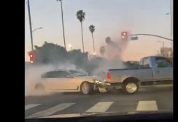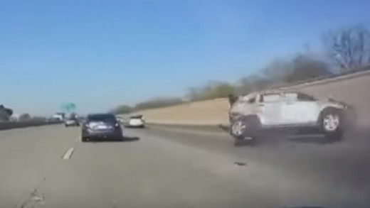 Vieglais auto, kas priekšā braucošo apsteidz pa labo pusi, uztriecas policijas auto, kas bija apstājies piecu joslu maģistrāles malējā labajā joslā, lai palīdzētu kādam citam autovadītājam. Lasīt vairāk