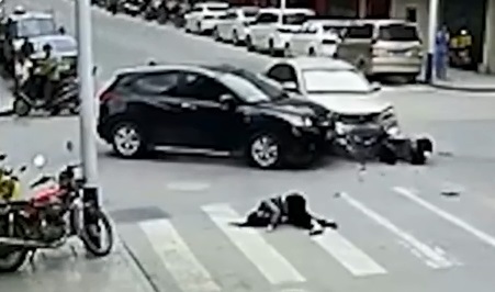 Kādā krustojumā saduras divas vieglās automašīnas un motocikls. Lasīt vairāk