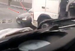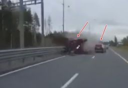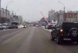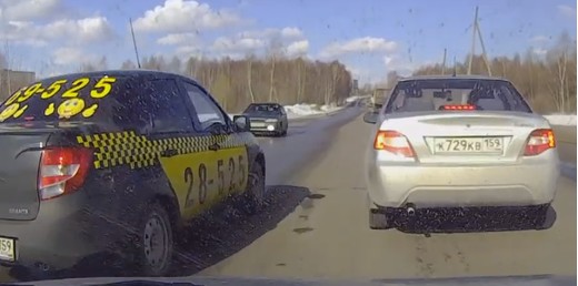 Kad abi priekšā esošie sāk bremzēt, lai pagrieztos pa kreisi, video autoram vairs nav kur palikt. Lasīt vairāk