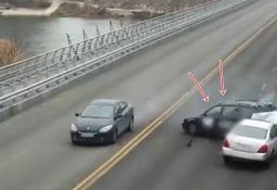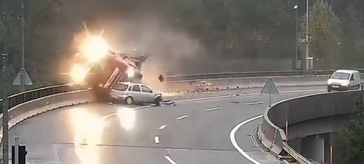 Vieglā auto vadītājs zaudē kontroli pār savu spēkratu un ietriecas blakus braucošajā kravas auto, liekot tam atsisties pret viadukta margām. Drošības konstrukcija neiztur, kravinieks nogāžas no 40m augstuma un aizrauj nāvē arī tā šoferi. Lasīt vairāk
