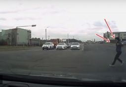 Baltās automašīnas vadītājs nedaudz piebremzē un, šķiet, pamaina trajektoriju, bet tai sekojošais žiguļa vadītājs tam nav gatavs (No 0:15) Lasīt vairāk