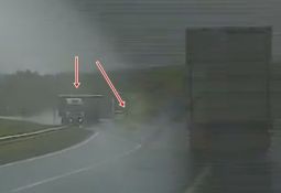 Vadītājs tuvojas bīstamai vietai (no 1:30) pārāk lielā ātrumā, mašīna uz slapjā ceļa izslīd un ietriecas betona apmalē. Lasīt vairāk