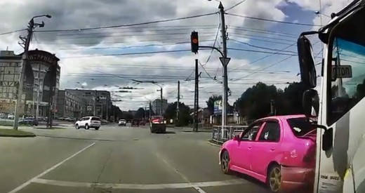 Vieglais auto strauji nobremzē brīdī, kad luksofora zaļais signāls sāk mirgot un saņem triecienu no autobusa, kura vadītājs nepaspēj laikā apstāties. Lasīt vairāk