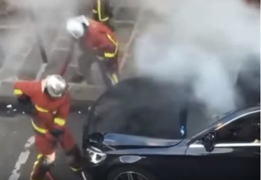 Video iemūžināts Parīzes ugunsdzēsēju darbs, dzēšot kādu sākumā šķietami neliela uguns perēkļa pārņemtu Mercedes. Lasīt vairāk