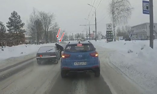 Automobilis apstājas, lai palaistu gājēju, kas vēlas pāriet ielu vietā, kur nav gājēju pārejas, taču otrā joslā braucošie nav tam gatavi (no 1:28) Lasīt vairāk