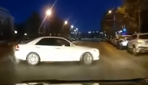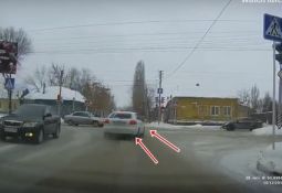 Video autors ietriecas durvīs vadītājam, kas izbraucot no sānielas saslīd un paliek ceļā filmētājam. Lasīt vairāk