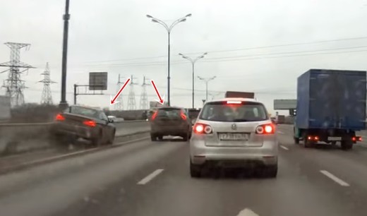 Brīdī, kad priekšā braucošie sāk bremzēt (mazliet tālāk notikusi avārija), video autors uzņēmis pārāk lielu ātrumu, tādēļ izvairīšanās no sadursmes nenākas viegli Lasīt vairāk