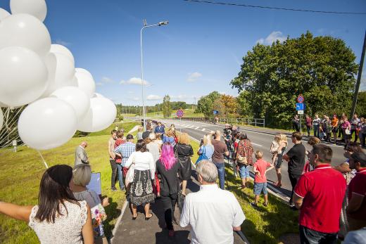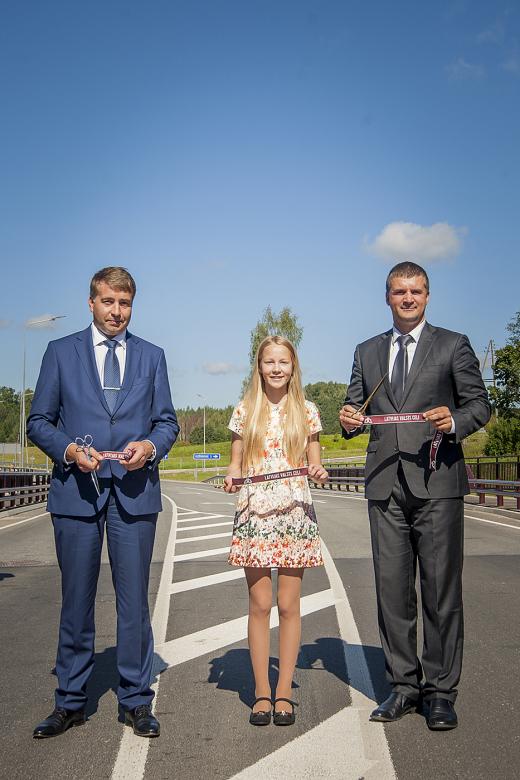 Lentu uz tilta pārgrieza satiksmes ministrs Uldis Augulis, VAS Latvijas Valsts ceļi (LVC) valdes priekšsēdētājs Jānis Lange, Vecpiebalgas novada domes priekšsēdētāja Ella Frīdvalde – Andersone, SIA 8CBR valdes priekšsēdētājs Andris Lancbergs, LVC projekta vadītāja Gunta Ķikse un Loreta Ločmele, kura pirms trīs gadiem rakstīja vēstuli valdības vadītājam Valdim Dombrovskim, aicinot uzsākt ceļa remontdarbus.