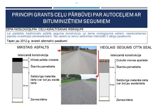 Atšķirībā no tradicionālās asfaltēšanas, mīkstā asfalta ieklāšana ceļiem ar zemu satiksmes intensitāti ir lētāks un piemērotāks risinājums. Pērn ar šādu tehnoloģiju tika uzlaboti 300 km grants ceļu, bet šogad noasfaltēto ceļu apjoms būs vēl lielāks.