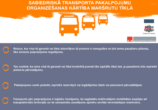 22.augustā Ministru kabineta sēdē valdība nolēma uzlabot sabiedriskā transporta pakalpojumu organizēšanas kārtību, izveidojot sabiedriskā transporta pakalpojumus pēc pieprasījuma tajās teritorijās ar mazu apdzīvotības blīvumu, kur bieži vien ir slikti rentabilitātes rādītāji sakarā ar mazu autobusu piepildījumu.