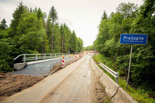 Būvdarbi turpinās arī uz šī paša ceļa posmā no Preiļiem līdz Bašķiem. Pērn jau veikta vājas nestspējas grunts nomaiņa – kopumā izvesti 86 tūkstoši m³ kūdras. Šogad izvests pārējais - 31 tūkst.m³. Ir veikti frēzēšanas darbi, izbūvēts salturīgais slānis un šķembu pamatne, jūlijā gaidāmi pirmie asfaltēšanas darbi. Tiek atjaunoti arī abi šajā posmā esošie tilti – pār Preiļupīti un Jašas upi. Darbus veic SIA Lemminkainen Latvija. Projekta izmaksas ir 17,5 milj. eiro (ar PVN), būvdarbus līdzfinansē ERAF.