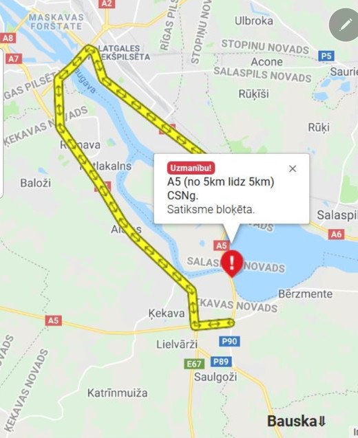 Patlaban transporta kustība ir bloķēta abos virzienus, un tuvākajā laikā tā netiks atjaunota.