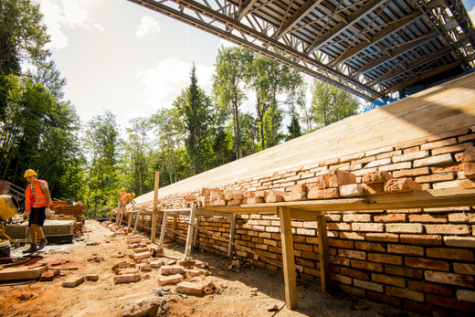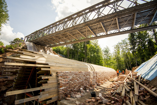 VAS Latvijas Valsts ceļi projektu vadītājs Didzis Zvirbulis, kurš uzraudzīja būvdarbu procesu, atzīst, ka lielākais izaicinājums būvdarbu laikā bija nodrošināt satiksmi pa saliekamo tiltu virs 12 m dziļas būvbedres. Sarežģītākais darbs bijis atjaunot caurtekas konstrukciju, arī ieteces un izteces nostiprinājumus to vēsturiskajā izskatā. Tā, piemēram, karnīze virs caurtekas sastāv no 1,5-2 tonnu smagiem akmeņiem. Projekta autors Ģirts Šķupelis no SIA Projekts 3 bija vadījies pēc pieejamajiem 19. gadsimta tipveida caurteku projektiem. D. Zvirbulis atzīst, ka kopumā ir gandarīts par paveikto un projekta rezultātu.