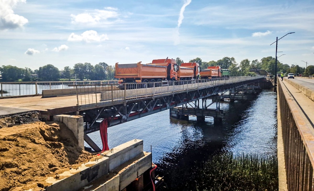 Lai pārbaudītu pagaidu tilta nestspēju, 28. augustā to slogoja, izmantojot četras 30–31 tonnu smagas kravas automašīnas. Pārbaudē konstatēts, ka tilts ir derīgs ekspluatācijai.