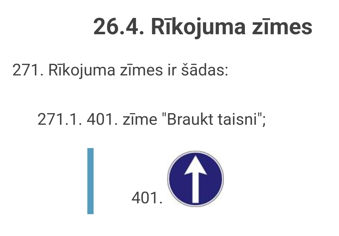 271.1. 401. zīme "Braukt taisni"; Foto: Ekrānuzņēmums no CSN