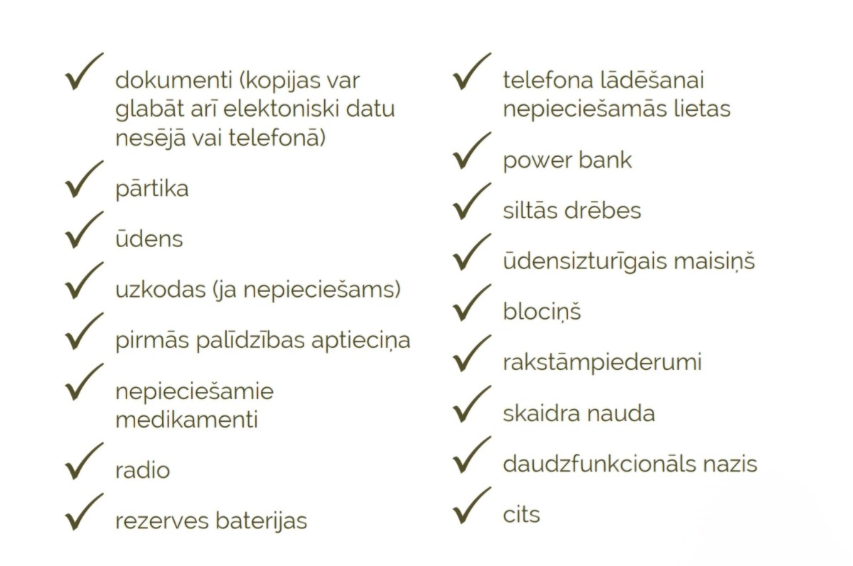 Izmanto iegūto informāciju un nosaki prioritātes, lai saliktu tev un tavai ģimenei piemērotu krīzes situācijas somu!