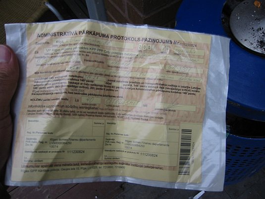 Jaunākais inspektors I.M. uzraksta administratīvā pārkāpuma protokolu paziņojumu Nr.111230824 un piestiprināja pie sarkanā Hyundai vējstikla. Savukārt vadītājs ar bārdiņu (redzams uz foto, turot labā rokā saņurcītu protokolu) no vējstikla paņem piestiprināto protokolu, saņurca un aiznes to līdz miskastei, kurā arī protokolu iemet.