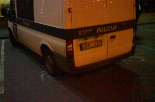 Lasītājs Uldis iesūtījis foto, kur redzams invalīdu stāvvietā novietots policijas mikroautobuss. Datums 22.04.2009. plkst. 21:37.