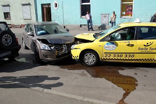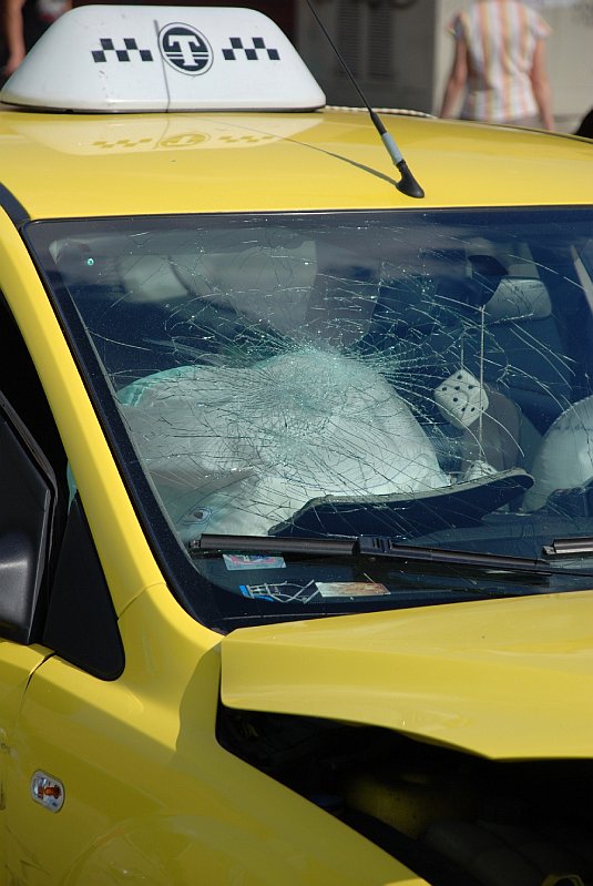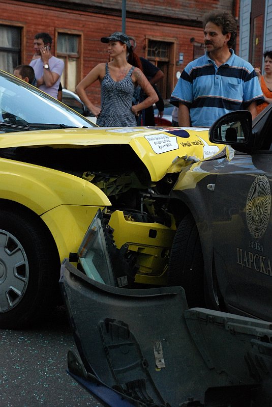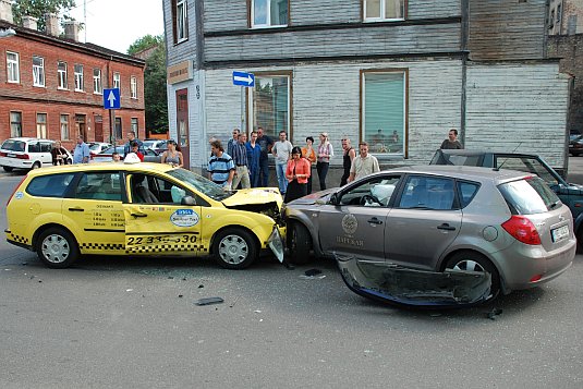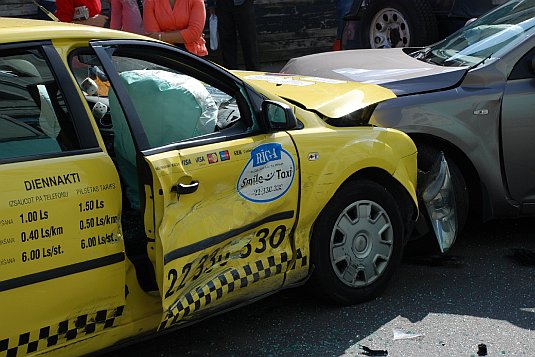 Manuprāt, šī avārija bija daudz nopietnāka nekā citas, jo dzeltenais taksometrs pēc sadursmes ielidoja pretējā joslā un sadurās ar pretimbraucošo Kia, (purns purnā). Cik noprotu, abi autovadītāji bija piesprādzējušies, jo nebija smagu traumu nevienam vai arī viņus izglāba gaisa drošības spilveni.