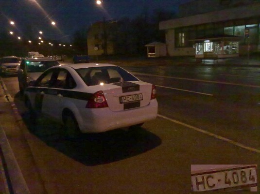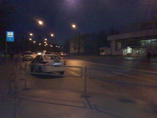 Tad no mašīnas izkāpja divi policisti un aizgāja iepirkties veikalā "Maxima X". Kamēr policisti bija veikalā, es nofotografēju policistu mašīnu. Viens no policistiem, mani ieraugot pa logu fotografējot viņu mašīnu, pateica otram un izgāja no veikala uz manu pusi.