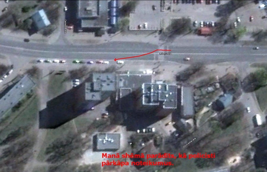 Ieraugot policistus, es nolēmu, man ir laiks iet, jo ar policistiem sarunāties negribu. Tad likum-sargi-pārkāpēji pārlika savu auto citur.