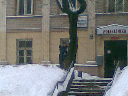 Foto uzņemts ceturtdien, 27.janvārī ap 9:15. Policists stāv pie poliklīnikas Valdemāra ielā un pa rāciju ziņo par auto (pie reizes arī laikam filmēja), kas nogriezušies pa labi uz Aristīda Briāna ielas - tur luksaforam ir papildsekcija, kas ļauj nogriezties par labi.