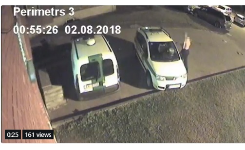 Viņš skaidroja, ka naktī Rīgas pašvaldības policijas Vidzemes pārvaldes dežurants, koordinējot auto patruļas tuvējās apkaimēs, izdzirdēja vairākus skaļus būkšķus no policijas stāvvietas. Pārbaudot perimetru videonovērošanas kamerās, viņš pamanīja puspliku vīrietis ar cirvi rokās pie diviem Rīgas pašvaldības policijas operatīvajiem transportlīdzekļiem. Vīrietis pēkšņi ar cirvi sāka dauzīt vienu no transportlīdzekļiem, savukārt mirkli vēlāk jau metās bēgt.