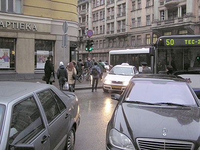 Tajā pašā laikā pa Brīvības ielu brauca kāds ceļu policijas auto un arī iekļuva šajā sastrēgumā - tieši aiz apturētā autobusa. Pienācu pie šī auto un lūdzu viņus (kā jau kārtības sargus) palīdzēt atrisināt šo situāciju. Nācās noklausīties dažādas atrunas (ka viņi esot no citurienes) un rezultātā viņiem izdevās veiksmīgi aizbraukt un apturēt viņus varēja tikai noguļoties zem viņu auto riteņiem.