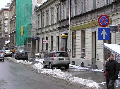 1.februārī aizbraucām pavērot situāciju. Tomēr nācās secināt, ka nekas īpašs nav mainījies. Automobiļi arī šoreiz bija novietoti turpat - zem zīmes "Apstāties aizliegts" + uz ietves.Tā gadījās, ka pavisam netālu municipālā policija līmēja "dzeltenos soda protokolus" automobiļiem, kas bija nepareizi novietoti - uz Ģertrūdes un Baznīcas ielas krustojuma.