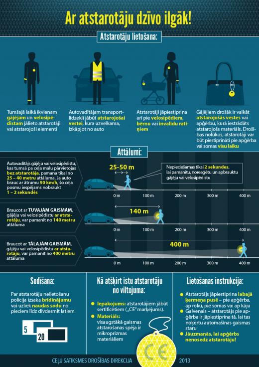 CSDD sagatavojusi īsu un noderīgu infografiku „AR ATSTAROTĀJU DZĪVO ILGĀK!” – par atstarotājiem, to pareizu lietošanu un par drošību tumšajā laikā!