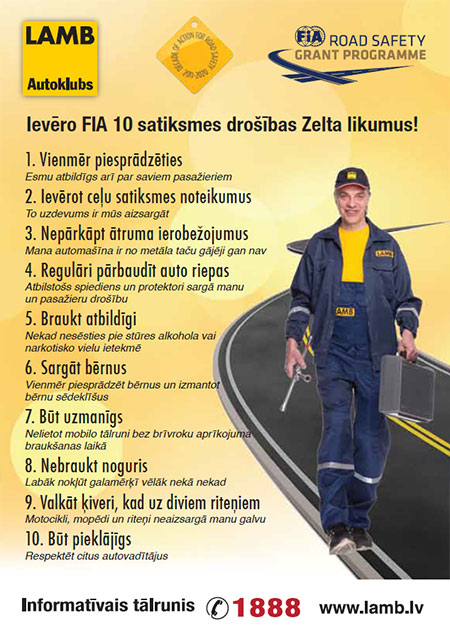 Autoklubi dažādās pasaules valstīs un kontinentos ir nozīmīgs FIA spēks, jo tieši ar to starpniecību tiek īstenoti projekti un akcijas ar mērķi stiprināt satiksmes drošību. Autoklubs LAMB ir viena no dalīborganizācijām, kas ar FIA atbalstu īstenojusi dažādus drošības projektus, aicinot rūpēties par autogaismām un kopējo automašīnas tehnisko stāvokli, kā arī dodot iespēju autovadītājiem, viņu vidū arī senioriem, atsvaidzināt savas braukšanas prasmes. Viens no svarīgākajiem uzdevumiem, kuru sev izvirzījusi LAMB, ir aicināt autovadītājus vienmēr ievērot FIA 10 satiksmes drošības Zelta likumus.