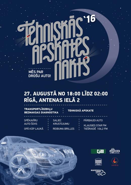 Jau šo sestdien, 27.augustā Rīgā, Antenas ielā 2, no plkst. 18.00 notiks 2016. gada noslēdzošais “Tehniskās apskates nakts - 2016” pasākums, kas norisinās jau piekto gadu.