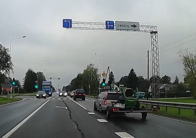 iAutolv lasītājs iesūtījis interesantu video, ko viņš ierakstījis oktobra sākumā braucot uz Rīgu. Ekrānšāviņos no šī video izceltas četras epizodes. Pirmajā redzams, kā pirms Augšlīgatnes, kur spēkā ātruma ierobežojums 70 km/h un novilkta nepārtrauktā līnija, Volvo ar piekabi un tajā iekrautu mauriņa pļāvēju, metas garām virknei automašīnu, kas brauc ievērojot noteikumus. Lai komplekts pilns, virzienrādītāji netiek lietoti.