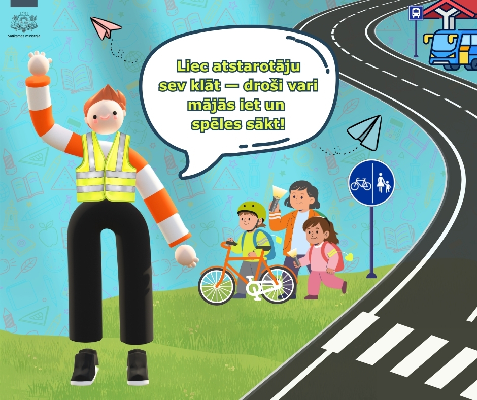 “Kad ārā kļūst tumšs, visiem ir grūtāk redzēt, kas notiek uz ceļa un pie tā. Tāpēc ir ļoti svarīgi, lai tevi pamana. Ja pieliec pie apģērba atstarotāju vai lieto lukturīti, tu palīdz citiem laicīgi sevi ieraudzīt. Tas nozīmē, ka vari justies drošāk un arī citiem tas palīdz būt uzmanīgiem. Būt redzamam nozīmē rūpēties par sevi un saviem draugiem — tā mēs visi kopā varam padarīt ceļu drošāku!”, aicinot bērnus un viņu vecākus pārrunāt ceļu drošības noteikumus, uzsver SM Sabiedriskā transporta pakalpojumu departamenta direktora vietnieks, satiksmes drošības eksperts Jānis Kalniņš.
