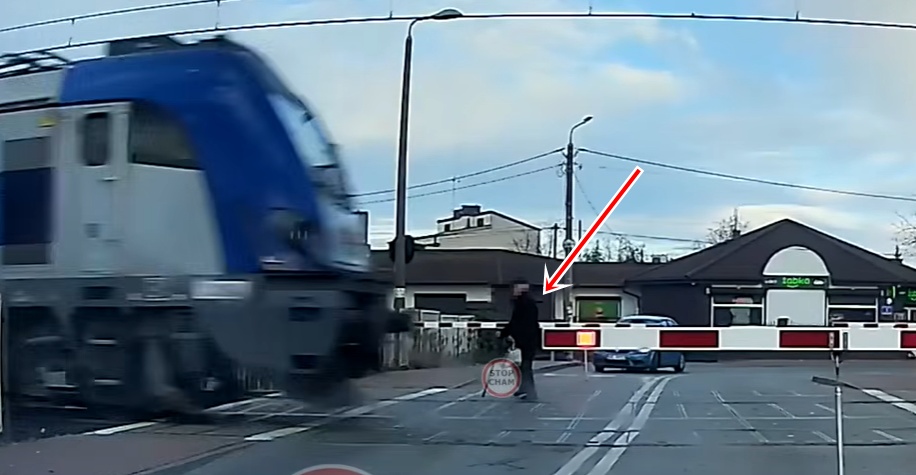 Virs jau cienījamos gados, riskē ar dzīvību, iziedams uz slēgtas pārbrauktuves. Laimīgā kārtā tikšanās ar vilcienu izpaliek, jo pēdējā brīdī viņš to pamana un sper soli atpakaļ.