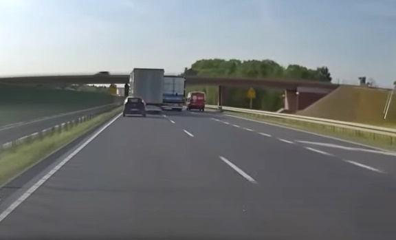 Veicot apsteigšanas manevru, kravas auto liek bremzēt vieglā auto vadītājam, kurš mirkli vēlāk nepaliek atbildi parādā. Lasīt vairāk