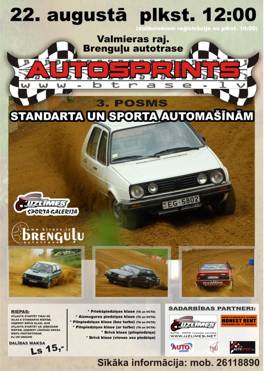 Pēc viena mēneša pauzes jau atkal klāt ir nākamais autosprinta posms. Nu jau šā gada trešais posms autosprintā norisināsies 22.augustā Brenguļu autotrasē.