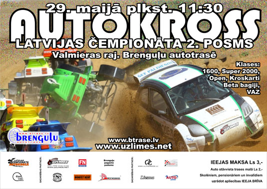 Svētdien Brenguļu autotrasē tiks aizvadīts Latvijas autokrosa čempionāta otrais posms, kas būs otrā sacīkste arī VAZ Klasika klases kausā, kā arī pirmā sacīkste Latvijas čempionātā CK125 kroskartu klasē un Beta bagiju bērnu Latvijas čempionātā.