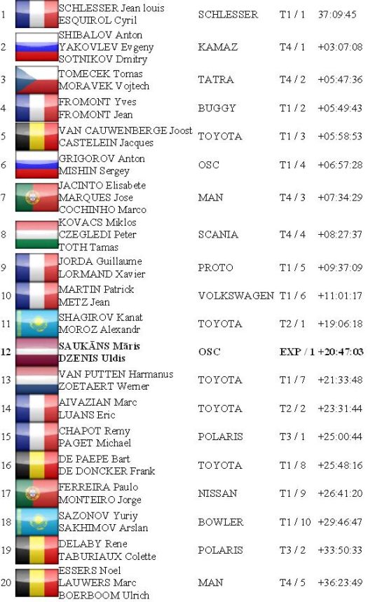 Rallija pēdējā dienā sportistiem bija jāveic tikai 24 kilometrus garš posms. Tajā nepārspēts palika Žans Luī-Šlesērs, kamēr abas OSC ekipāžas pēdējo posmu veica kopīgi un finišu šķērsoja pēdējās divās vietās, taču tas kopējo rezultātu neietekmēja.
