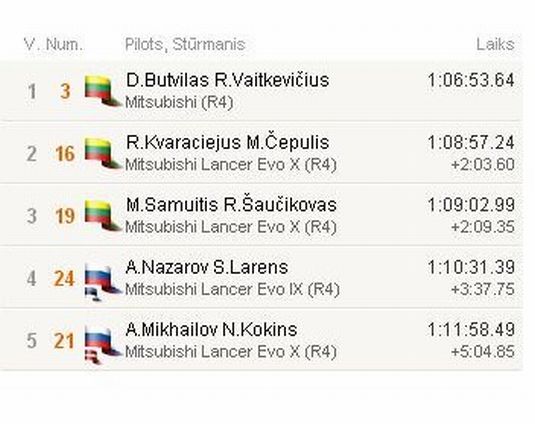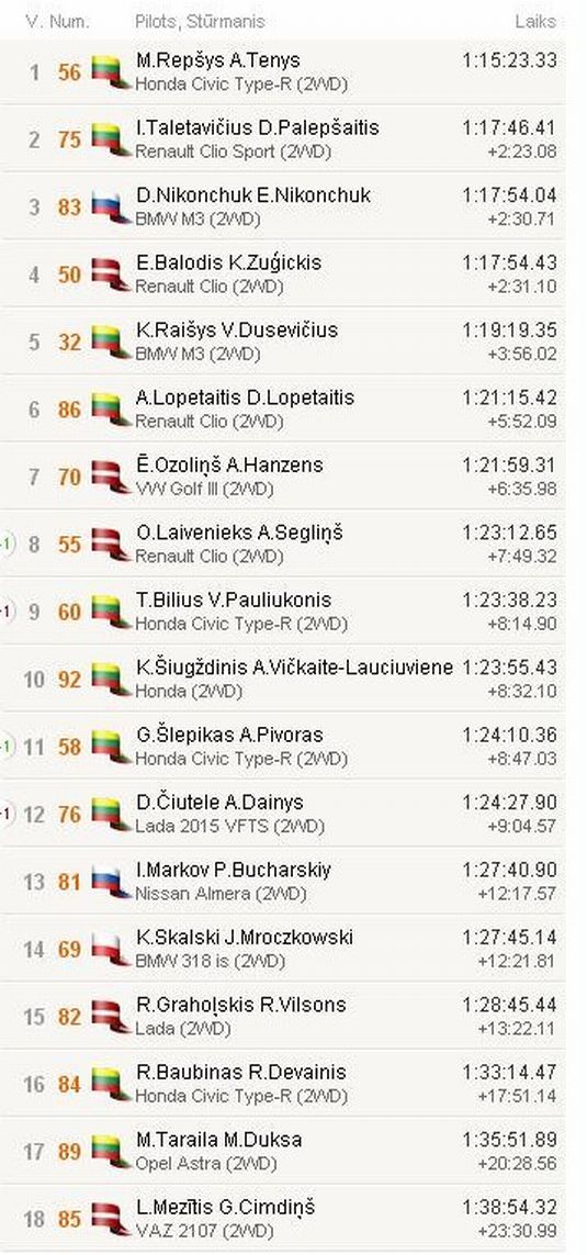 Pārējo klašu rezultātu tabulas pievienojam. Kā redzams Latvijas karodziņu finišā ļoti maz. Tā vien šķiet, ka mūsu nacionālais sporta veids pamazām sāk pārvērsties par „importa preci”.