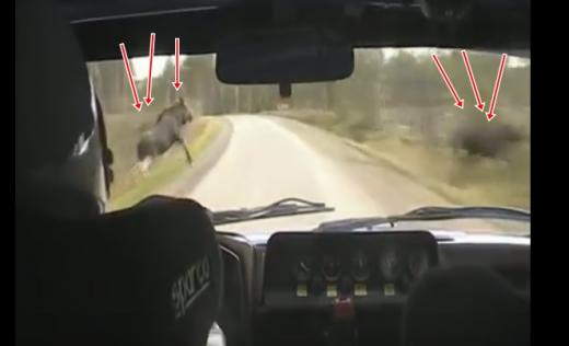 Vienā no Somijas rallija etapiem kādai ekipāžai iznāk sastapties ar aļņu baru (skatīt no 1:55). Lasīt vairāk