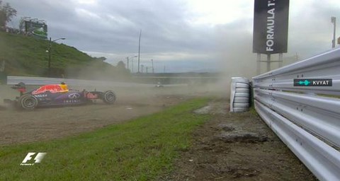Nepilnu minūti pirms tās beigām pēc uzbraukšanas uz zālāja kontroli pār savu formulu zaudēja krievu pilots Daniils Kvjats ("Red Bull"), piedzīvojot smagu avāriju un pat apmetot vienu kūleni. Lasīt vairāk