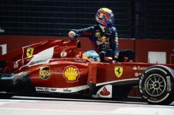 „Red Bull” F1 komandas pilotam Markam Vēberam par vizināšanos uz Fernando Alonso („Ferrari”) formulas pēc Singapūras Lielās balvas izcīņas finiša piespriests desmit starta vietu sods, vēsta oficiālā F1 mājaslapa.