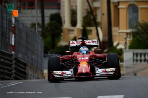 "Ferrari" komandas spāņu braucējs Fernando Alonso ceturtdien slapjos laika apstākļos bija labākais Pirmās formulas (F-1) pasaules čempionāta sestā posma - Monako "Grand Prix" - otrajā brīvo treniņbraucienu sesijā.